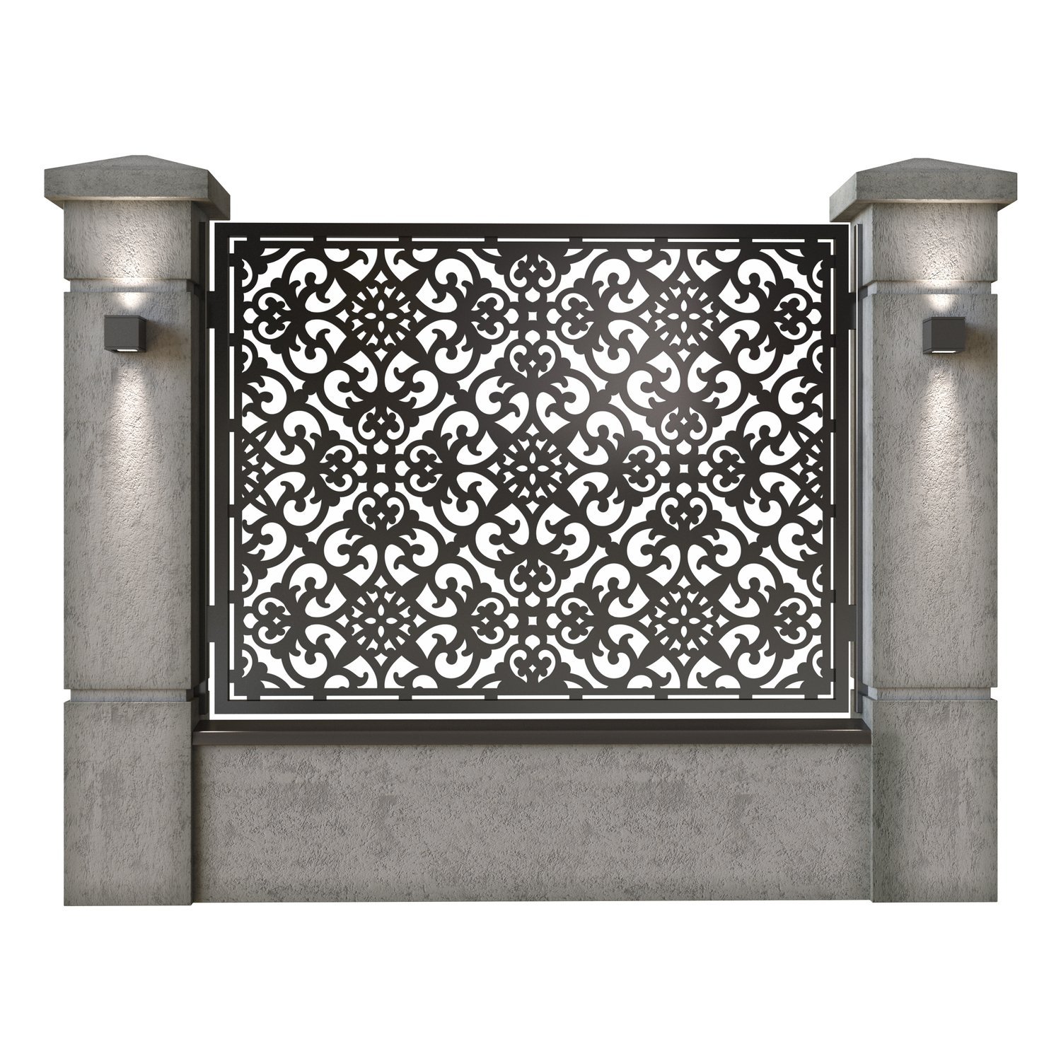 Panou de gard metalic din tabla debitata CNC, model Bella. Rama panoului este realizata din teava rectangulara tip lis (lisa), 40×30 mm, avand grosimea de 2 mm.