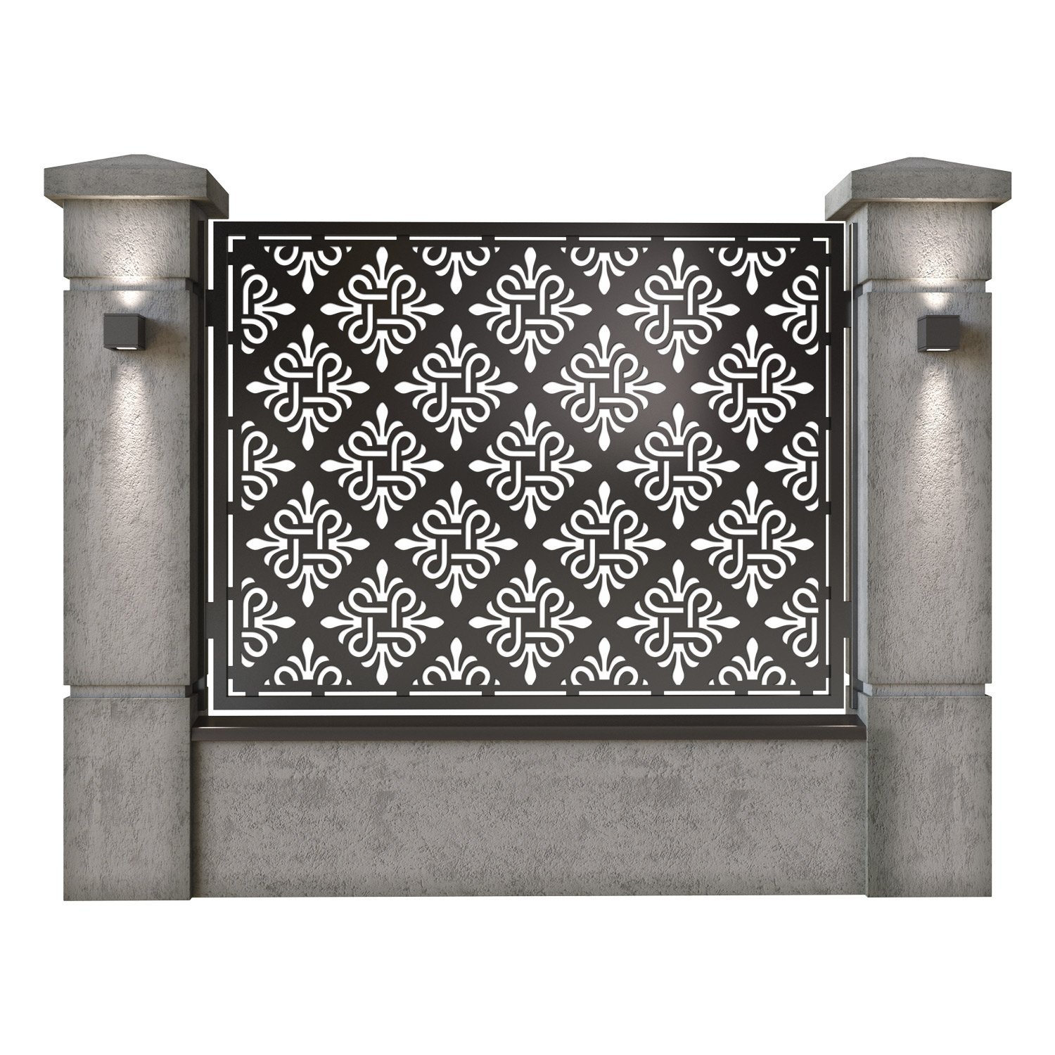 Panou de gard metalic din tabla debitata CNC, model Cairo. Rama panoului este realizata din teava rectangulara tip lis (lisa), 40×30 mm, avand grosimea de 2 mm.
