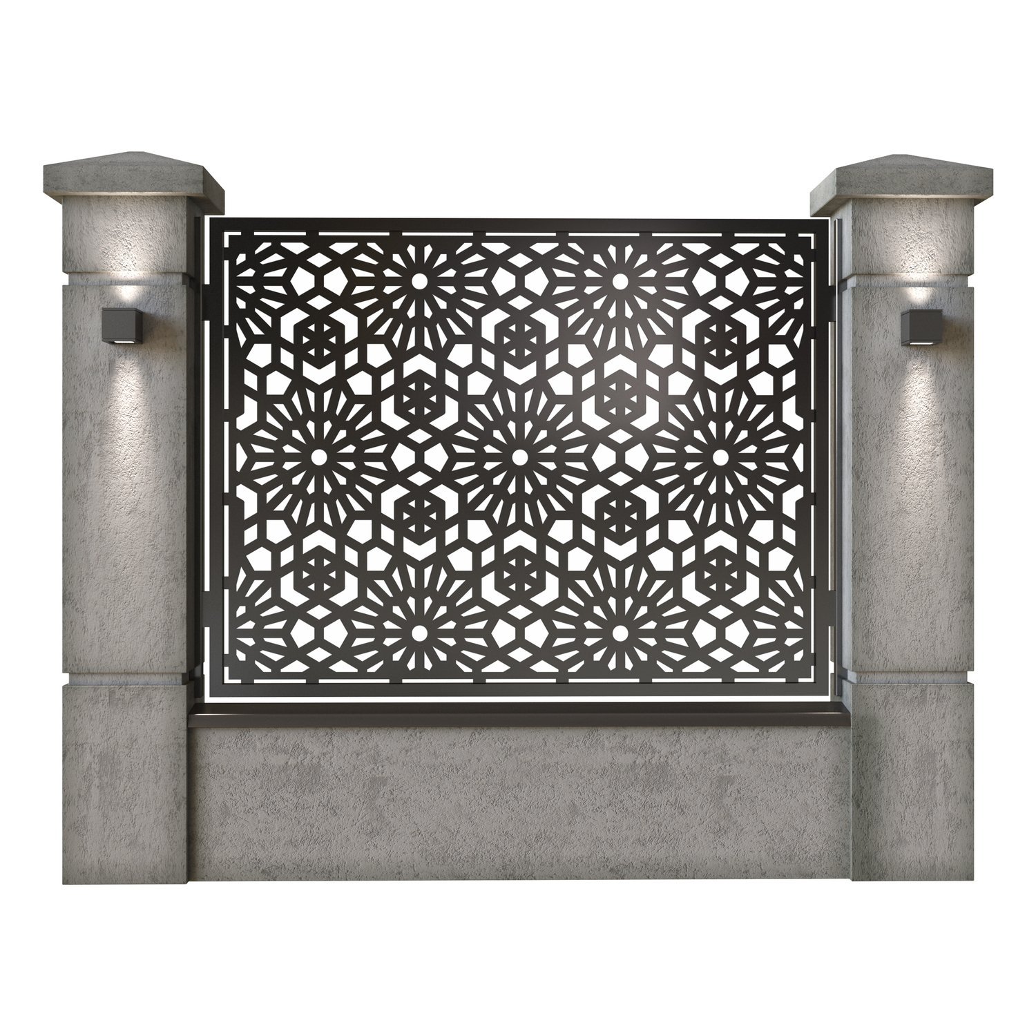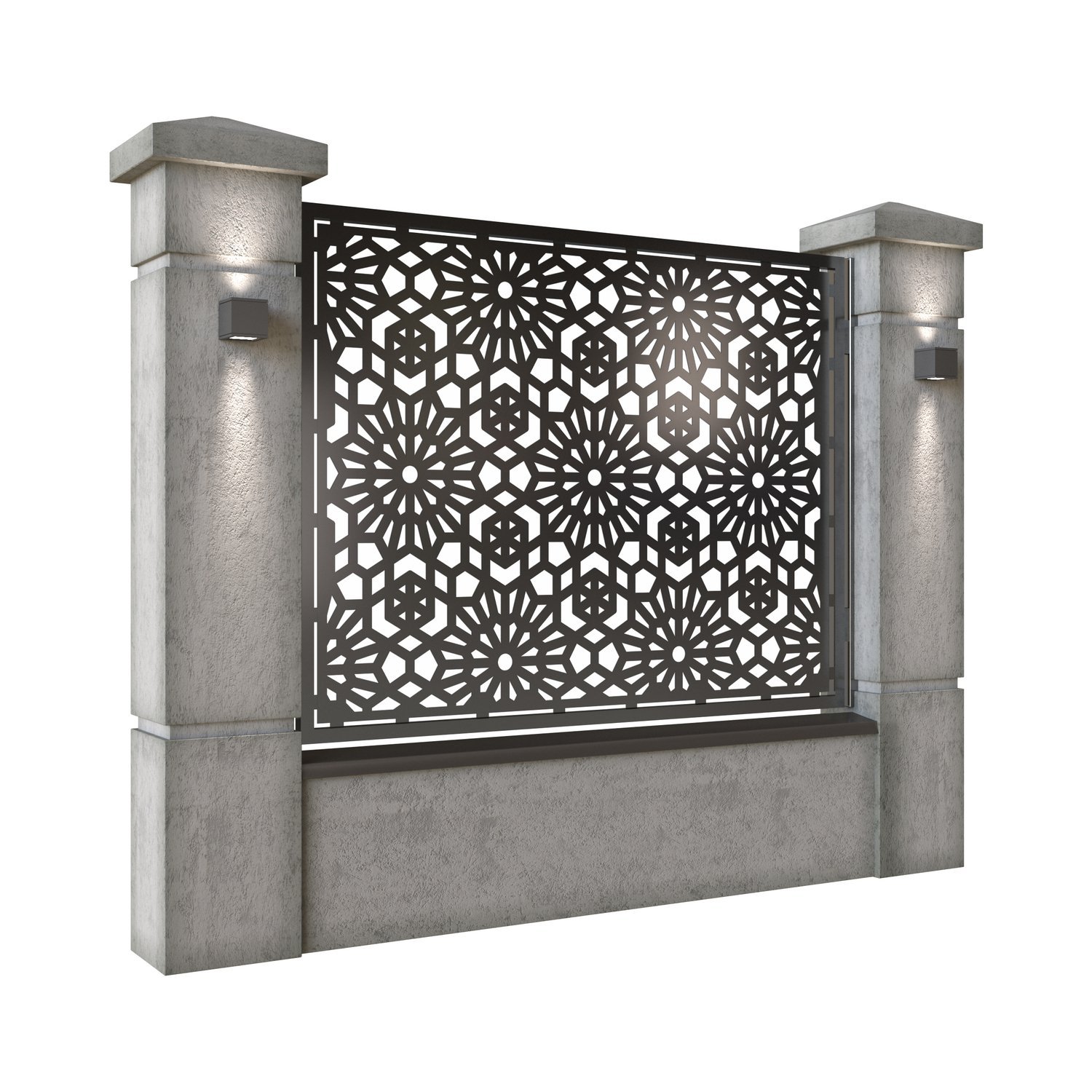 Panou de gard metalic din tabla debitata CNC, model Doha. Rama panoului este realizata din teava rectangulara tip lis (lisa), 40×30 mm, avand grosimea de 2 mm.