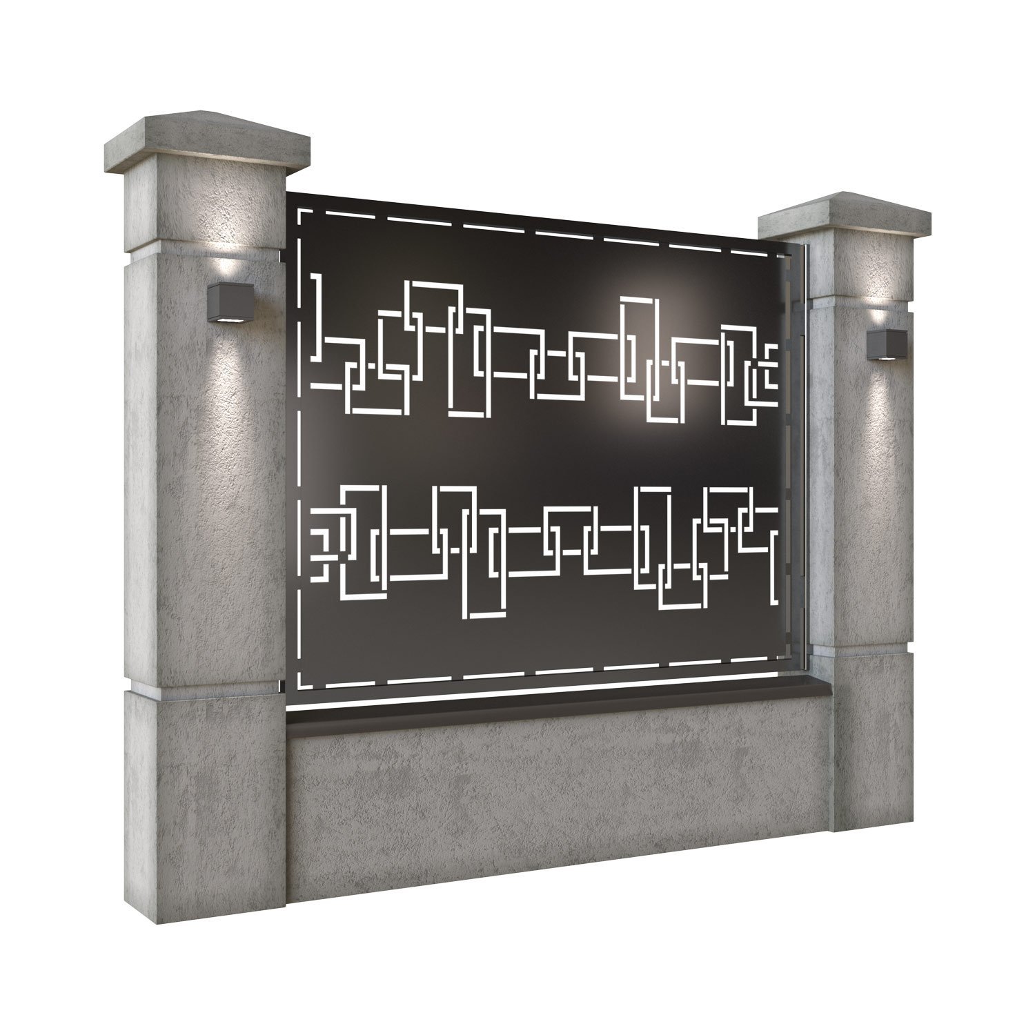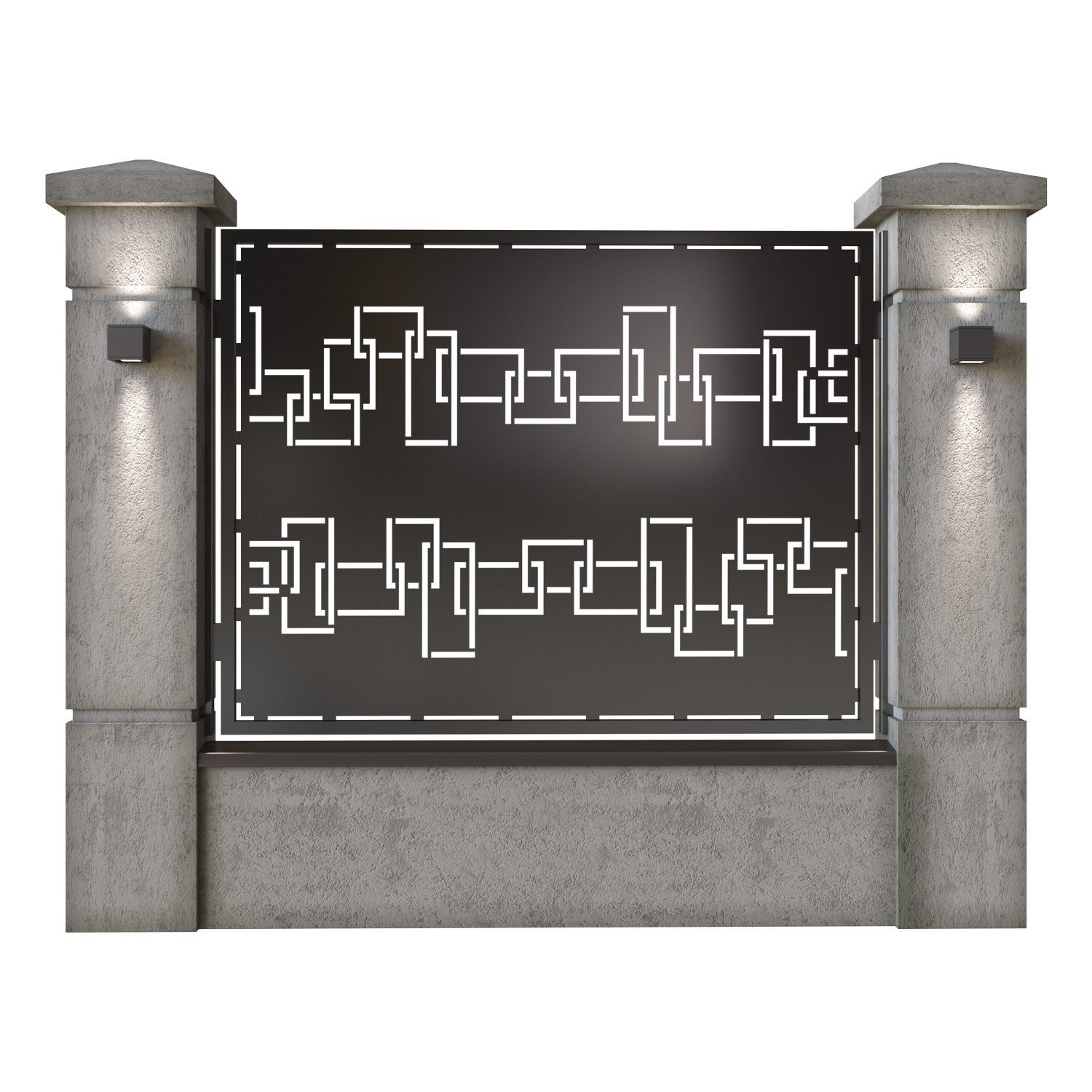 Panou de gard metalic din tabla debitata CNC, model Domino. Rama panoului este realizata din teava rectangulara tip lis (lisa), 40×30 mm, avand grosimea de 2 mm.
