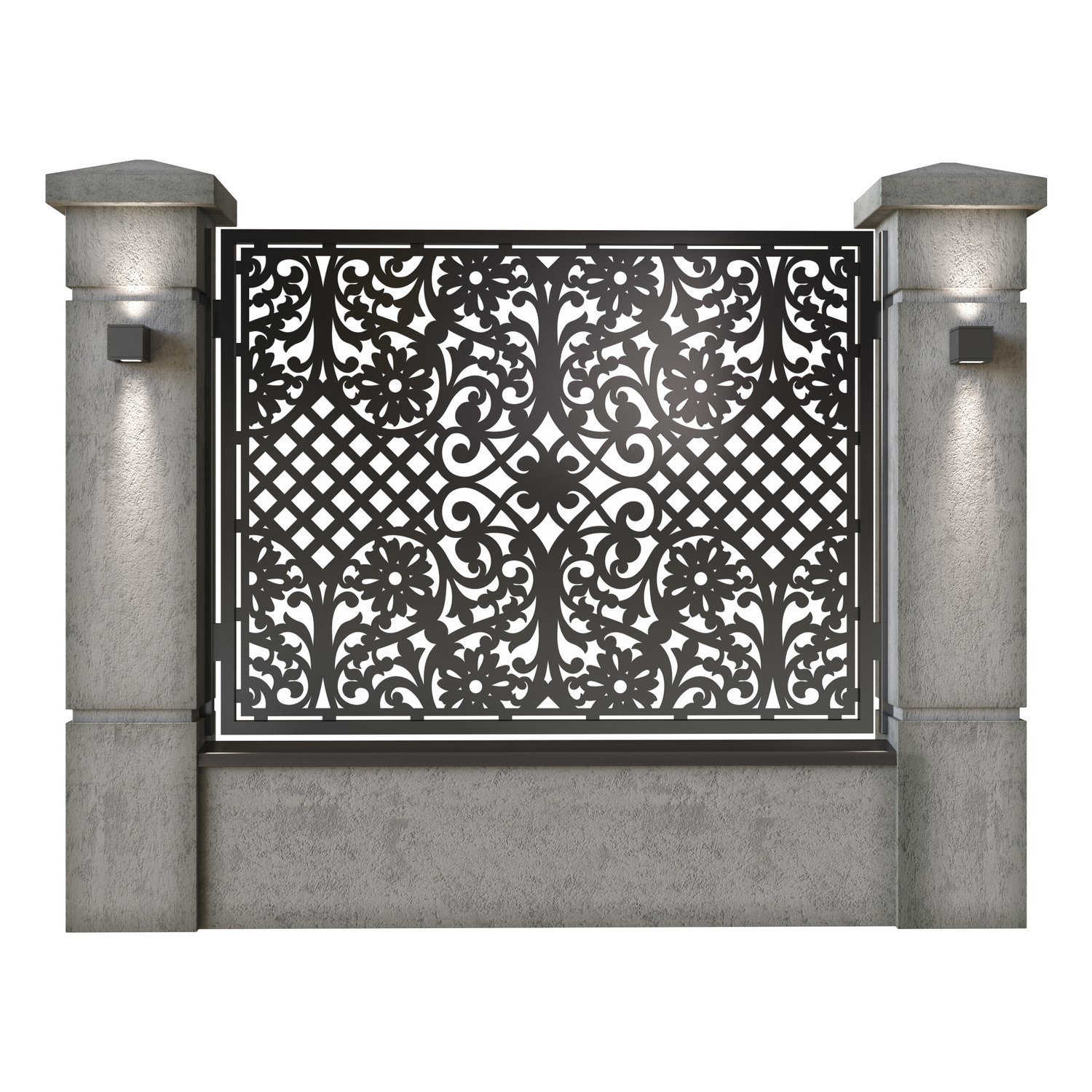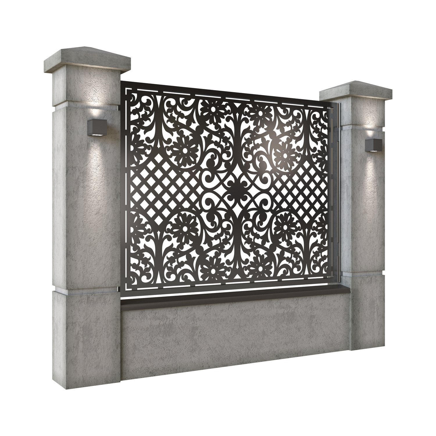 Panou de gard metalic din tabla debitata CNC, model Metropol. Rama panoului este realizata din teava rectangulara tip lis (lisa), 40×30 mm, avand grosimea de 2 mm.