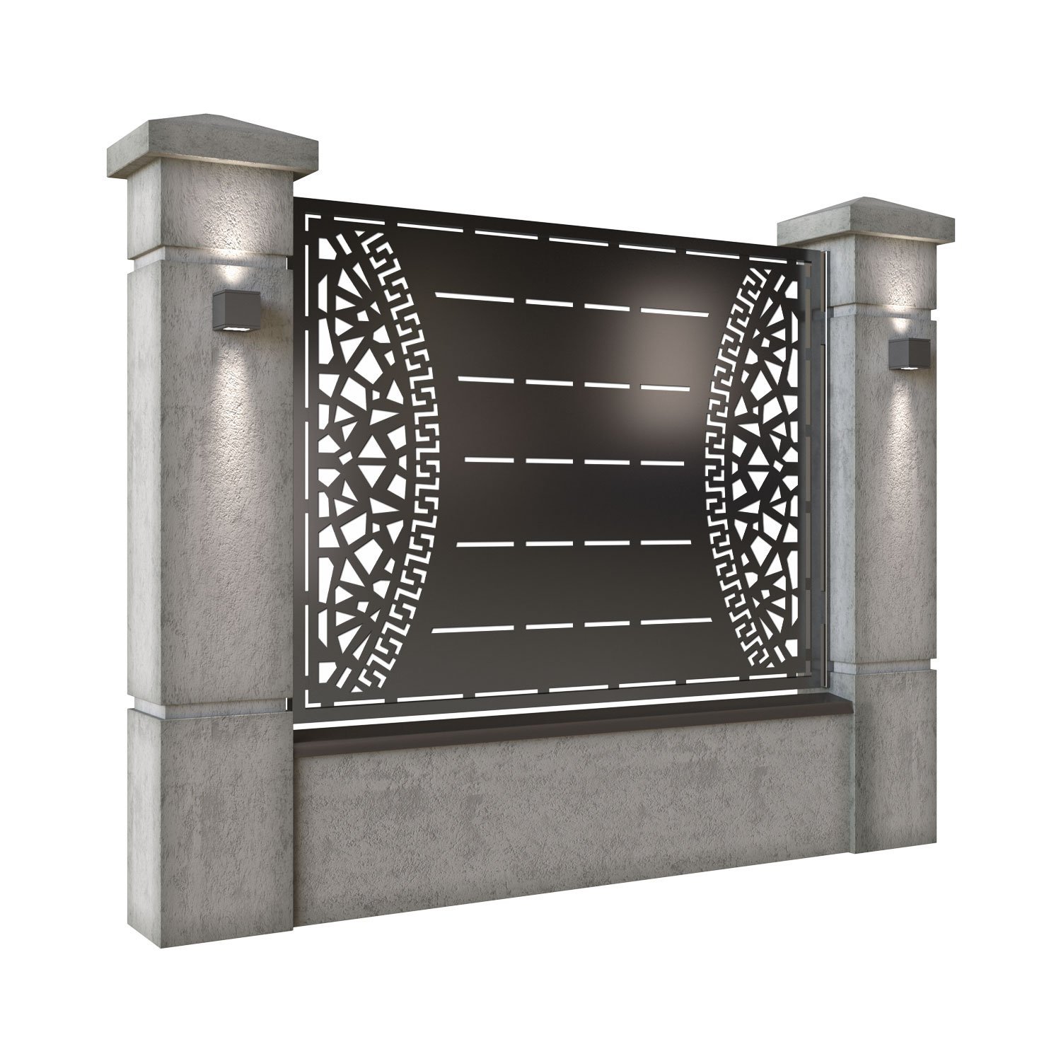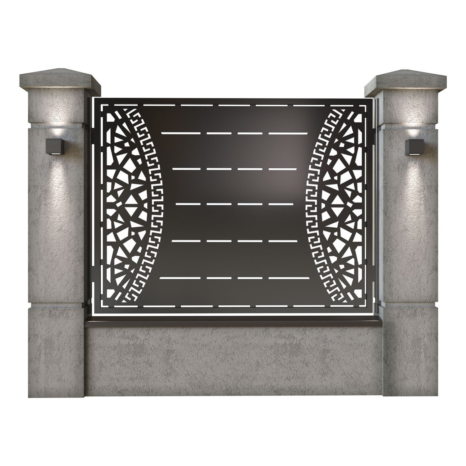 Panou de gard metalic din tabla debitata CNC, model Milano. Rama panoului este realizata din teava rectangulara tip lis (lisa), 40×30 mm, avand grosimea de 2 mm.