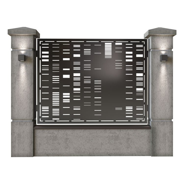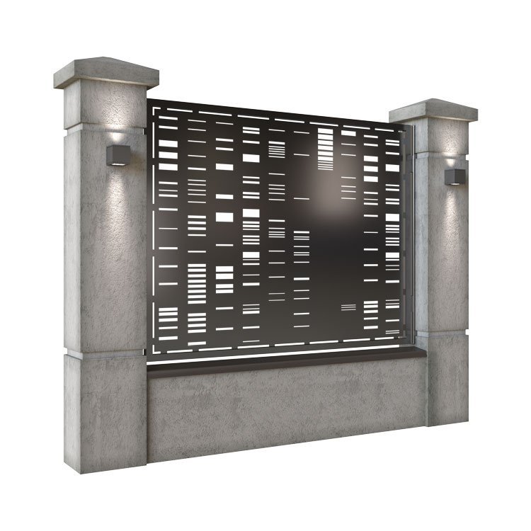 Panou de gard metalic din tabla debitata CNC, model Vertical. Rama panoului este realizata din teava rectangulara tip lis (lisa), 40×30 mm, avand grosimea de 2 mm.