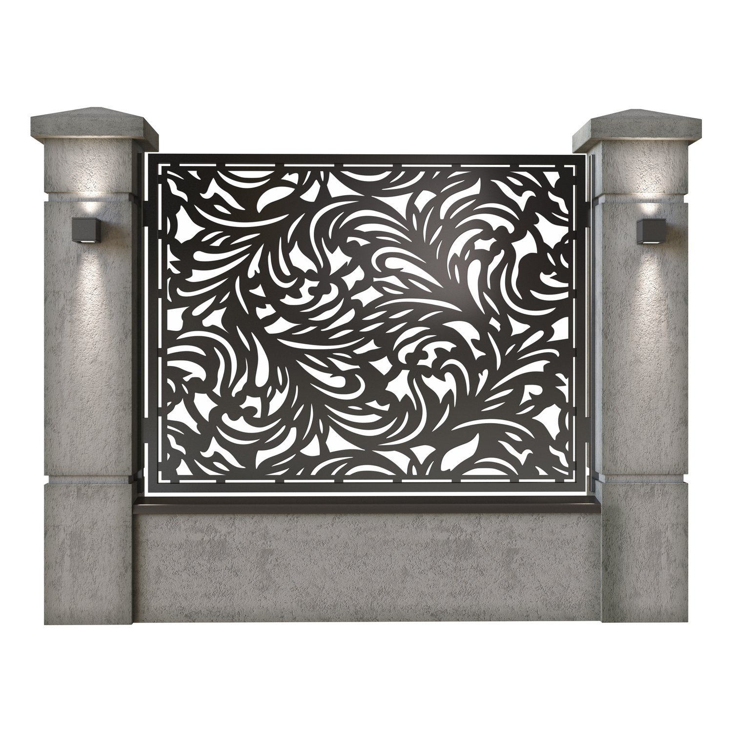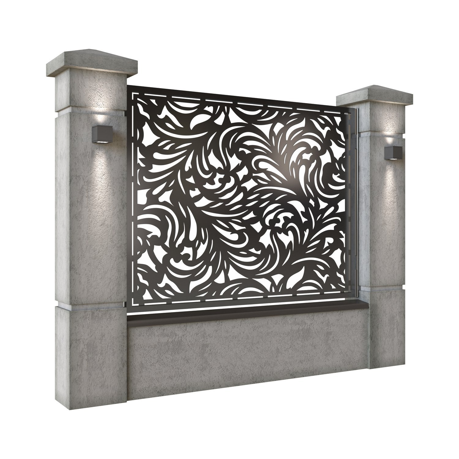 Panou de gard metalic din tabla debitata CNC, model Vortex. Rama panoului este realizata din teava rectangulara tip lis (lisa), 40×30 mm, avand grosimea de 2 mm.