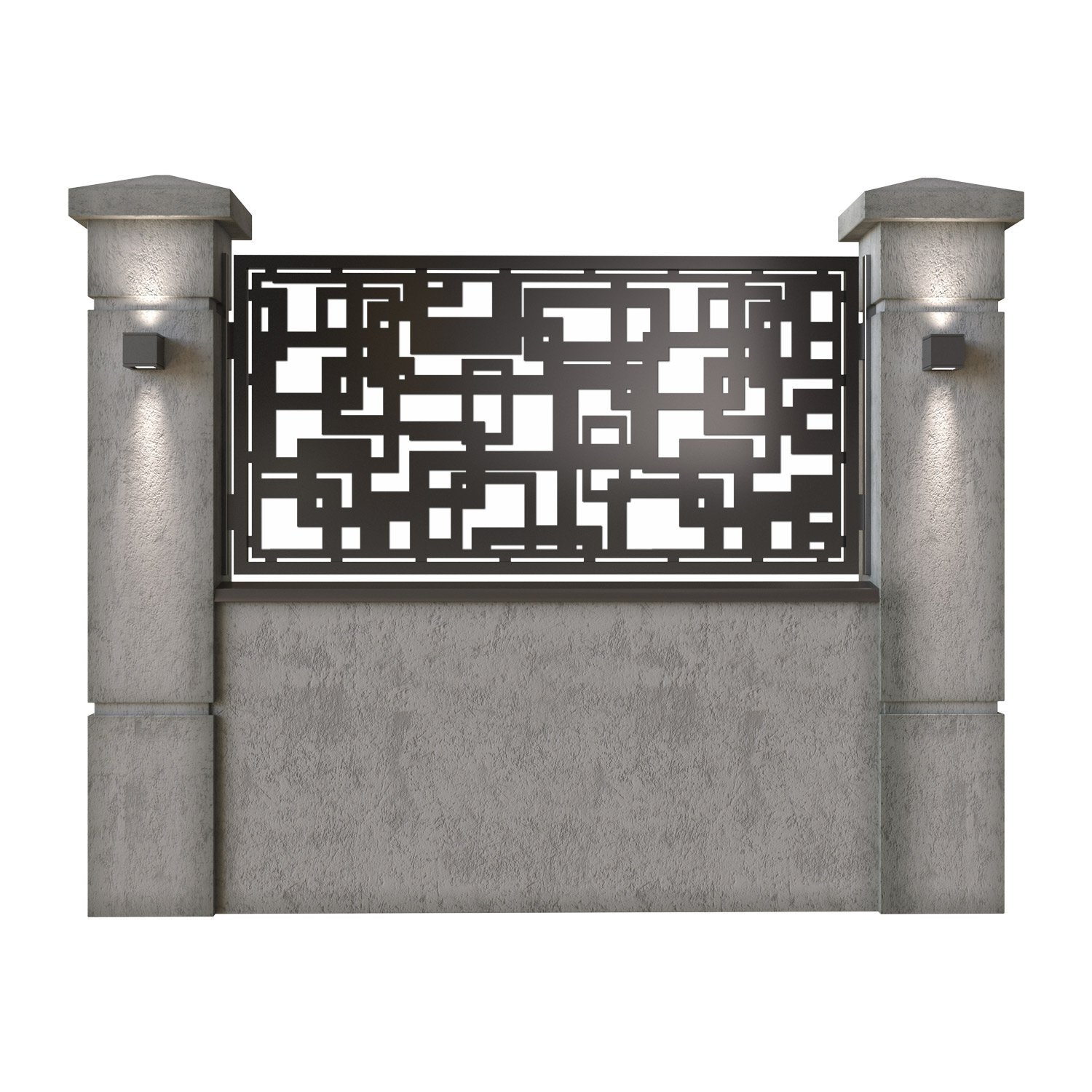 Panou de gard metalic din tabla debitata CNC, model Abstract. Rama panoului este realizata din teava rectangulara tip lis (lisa), 40×30 mm, avand grosimea de 2 mm.