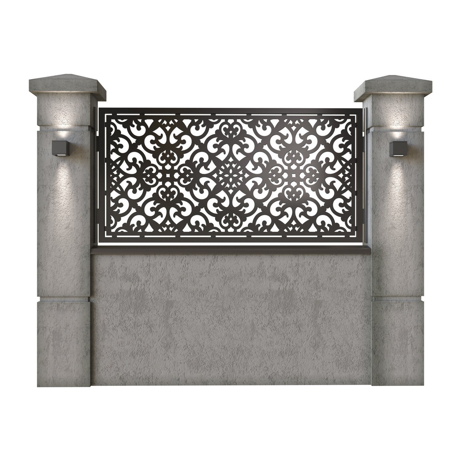 Panou de gard metalic din tabla debitata CNC, model Bella. Rama panoului este realizata din teava rectangulara tip lis (lisa), 40×30 mm, avand grosimea de 2 mm.