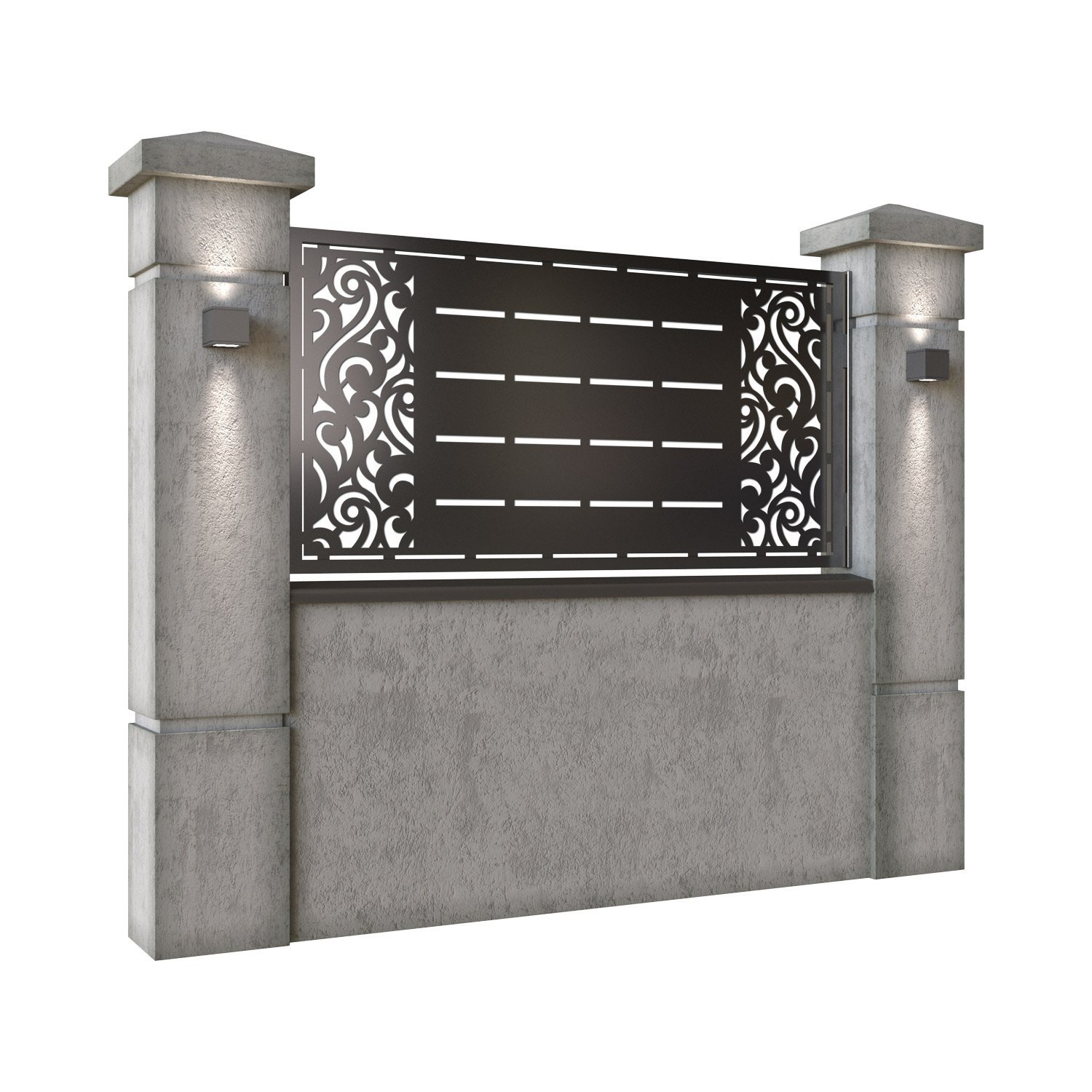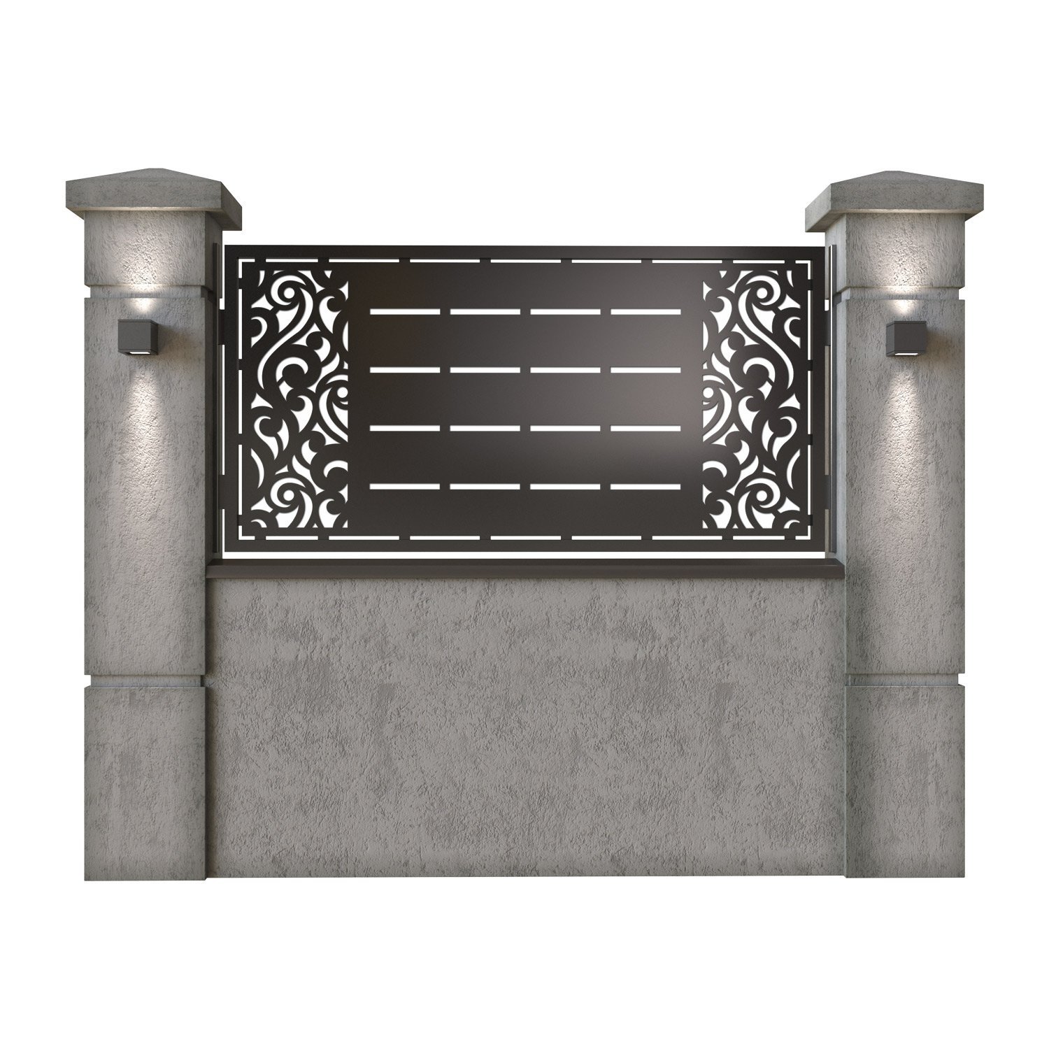 Panou de gard metalic din tabla debitata CNC, model Dubai. Rama panoului este realizata din teava rectangulara tip lis (lisa), 40×30 mm, avand grosimea de 2 mm.