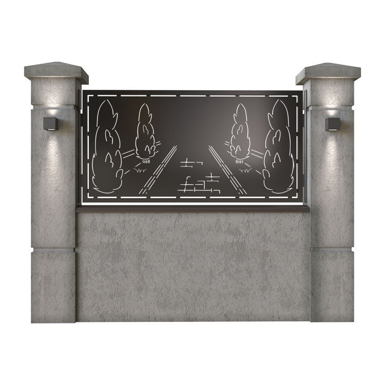 Panou de gard metalic din tabla debitata CNC, model Garden. Rama panoului este realizata din teava rectangulara tip lis (lisa), 40×30 mm, avand grosimea de 2 mm.
