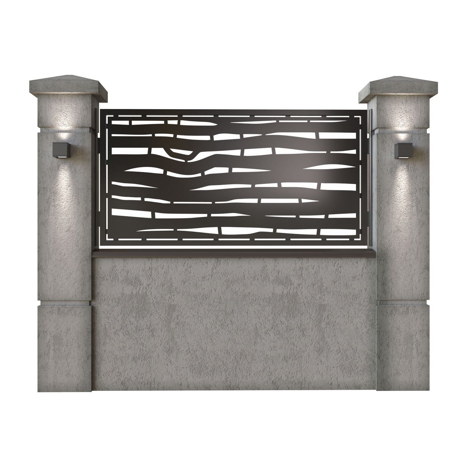 Panou de gard metalic din tabla debitata CNC, model Loft. Rama panoului este realizata din teava rectangulara tip lis (lisa), 40×30 mm, avand grosimea de 2 mm.
