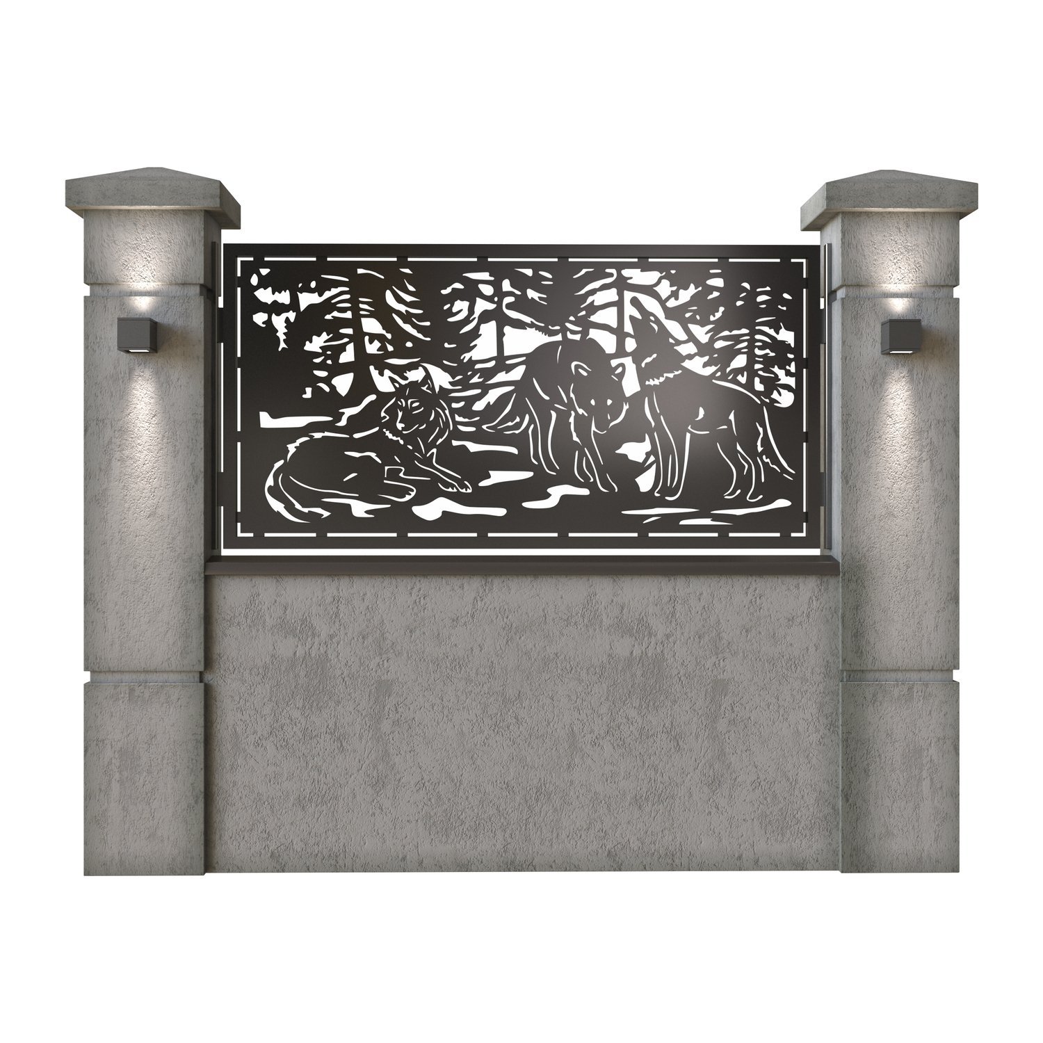 Panou de gard metalic din tabla debitata CNC, model Lupi. Rama panoului este realizata din teava rectangulara tip lis (lisa), 40×30 mm, avand grosimea de 2 mm.