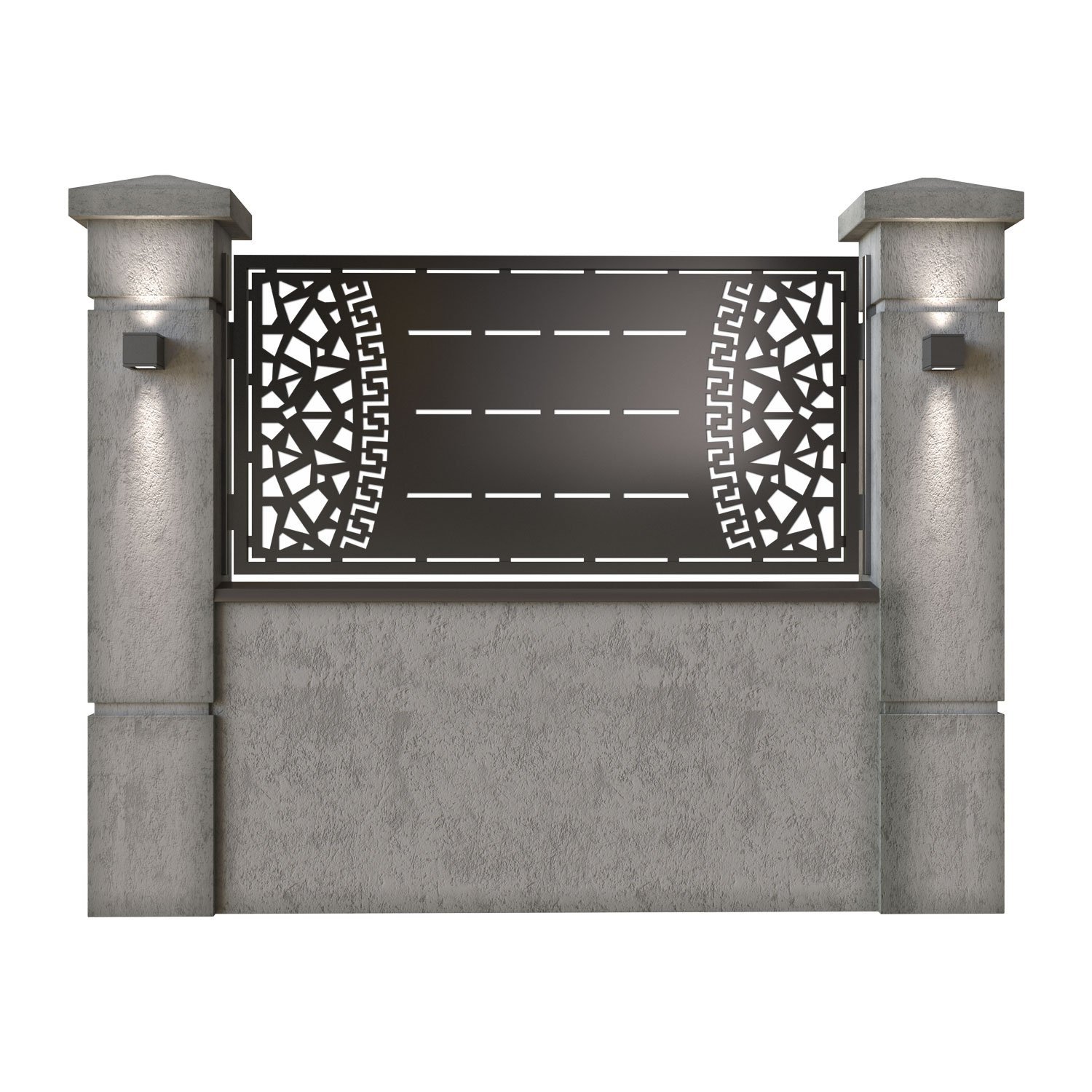 Panou de gard metalic din tabla debitata CNC, model Milano. Rama panoului este realizata din teava rectangulara tip lis (lisa), 40×30 mm, avand grosimea de 2 mm.