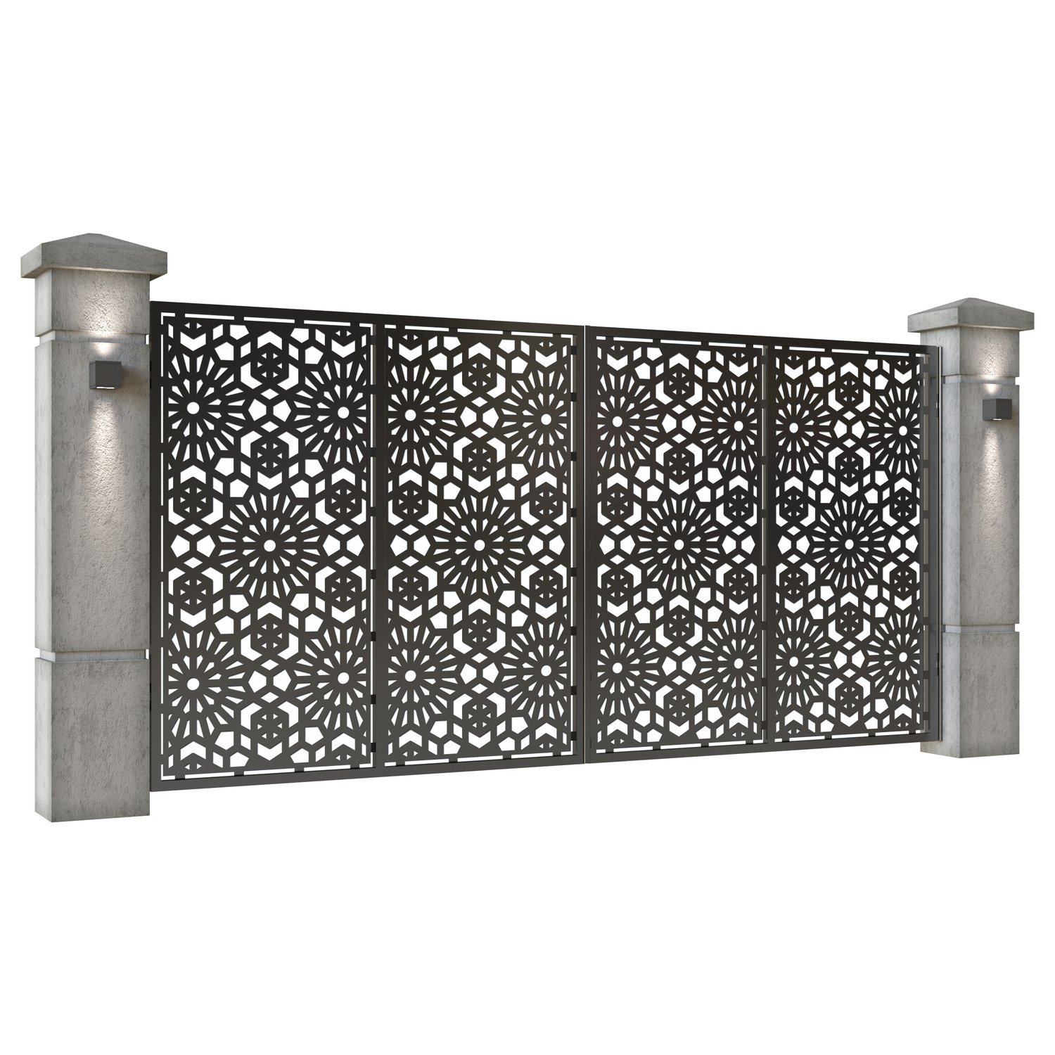 Panou de gard metalic din tabla debitata CNC, model Doha. Rama panoului este realizata din teava rectangulara tip lis (lisa), 40×30 mm, avand grosimea de 2 mm.