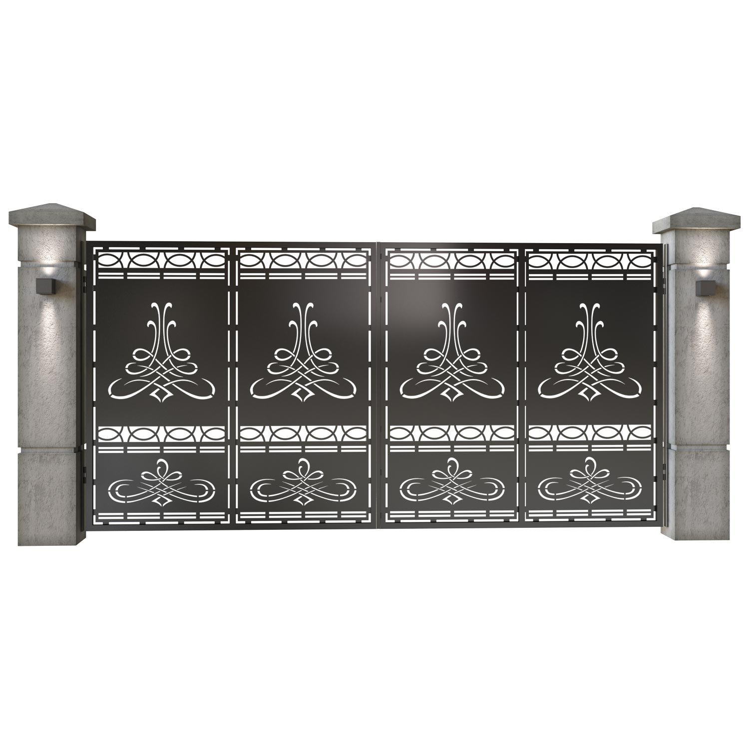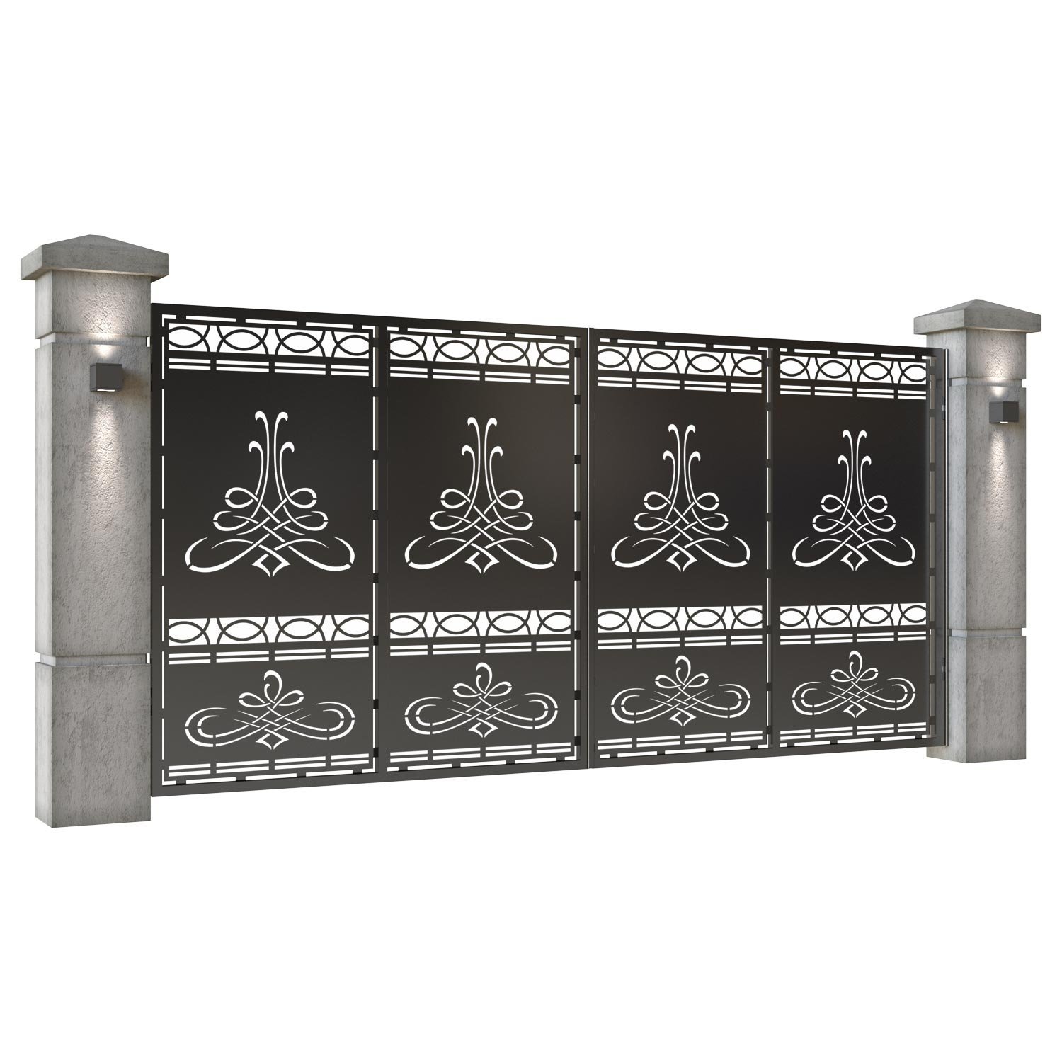 Panou de gard metalic din tabla debitata CNC, model Lima. Rama panoului este realizata din teava rectangulara tip lis (lisa), 40×30 mm, avand grosimea de 2 mm.