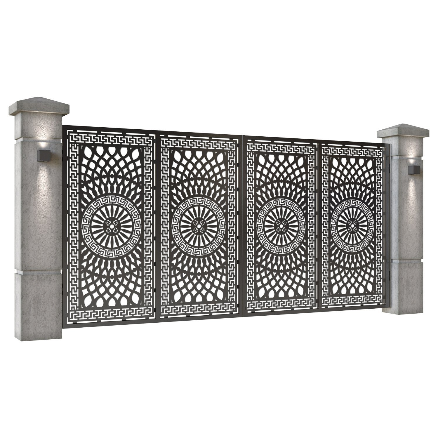 Panou de gard metalic din tabla debitata CNC, model Qatar. Rama panoului este realizata din teava rectangulara tip lis (lisa), 40×30 mm, avand grosimea de 2 mm.