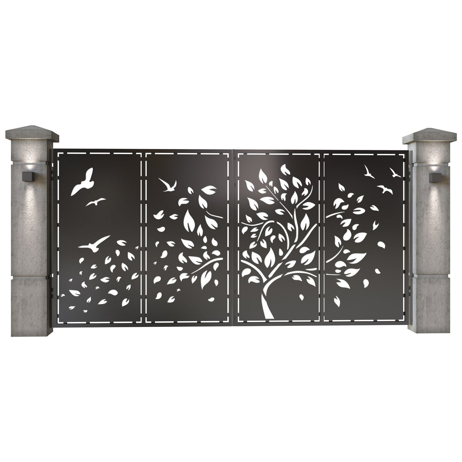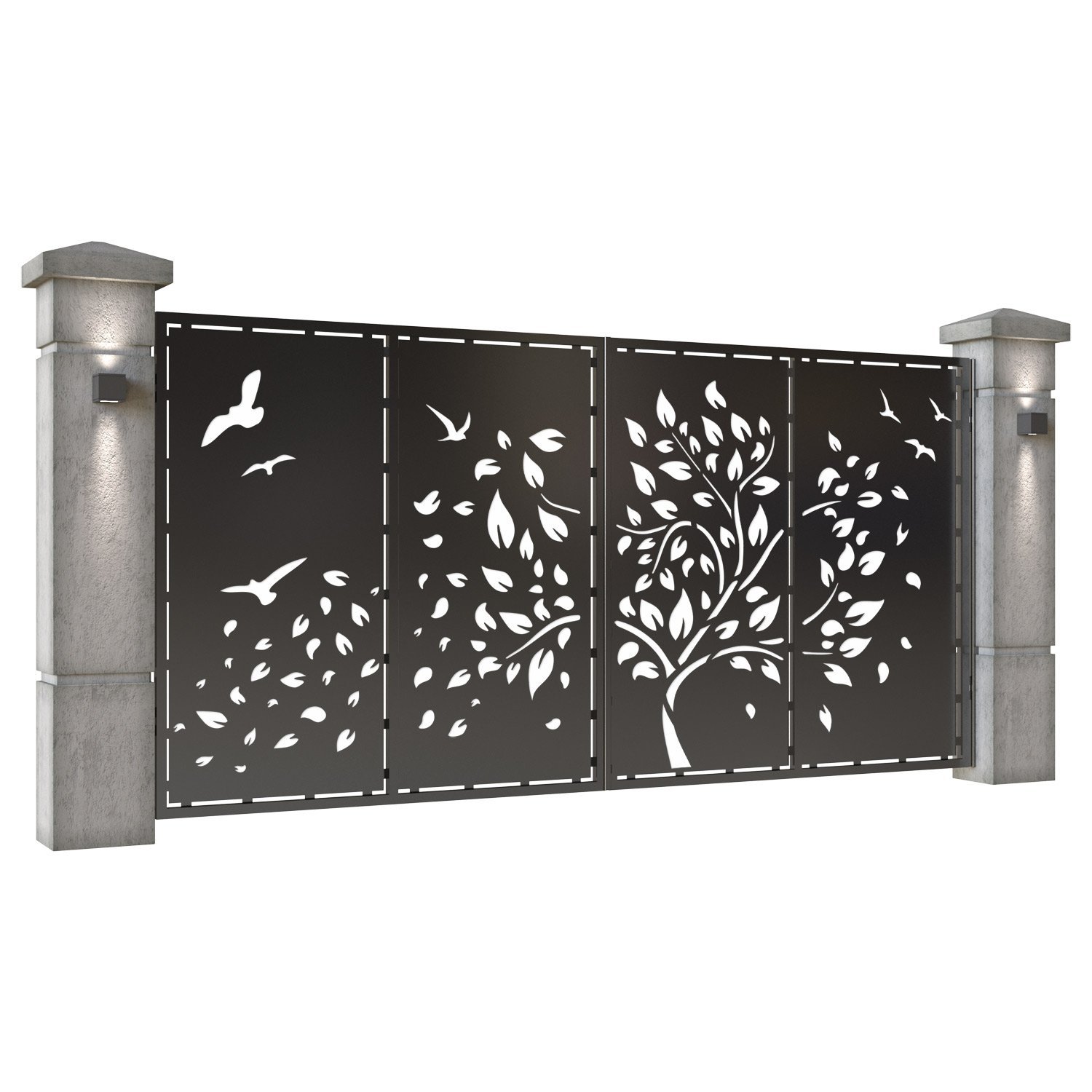 Panou de gard metalic din tabla debitata CNC, model Silva. Rama panoului este realizata din teava rectangulara tip lis (lisa), 40×30 mm, avand grosimea de 2 mm.