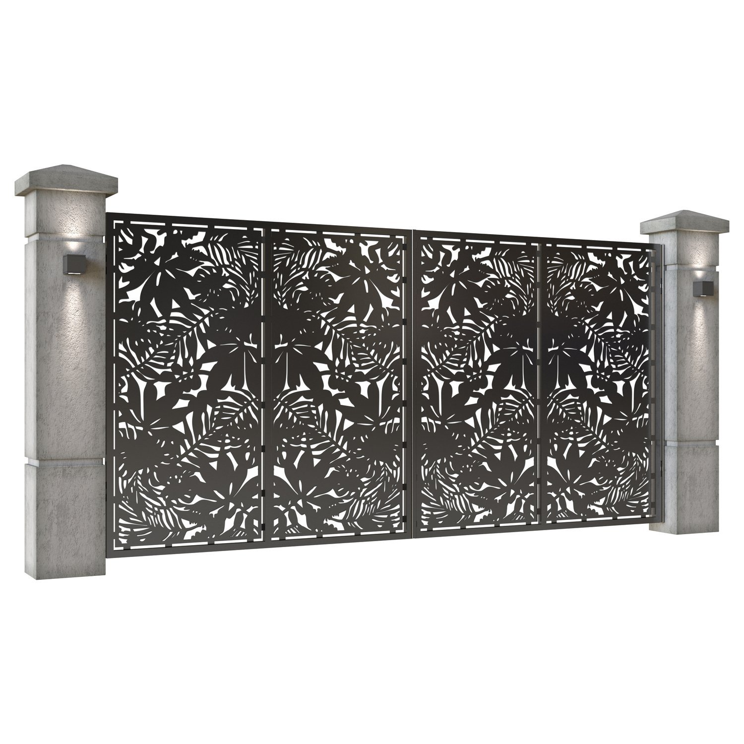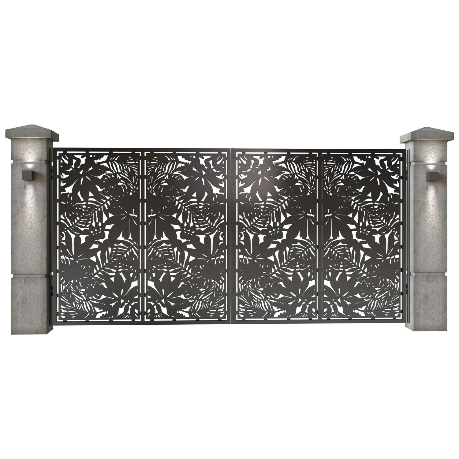 Panou de gard metalic din tabla debitata CNC, model Tropical. Rama panoului este realizata din teava rectangulara tip lis (lisa), 40×30 mm, avand grosimea de 2 mm.