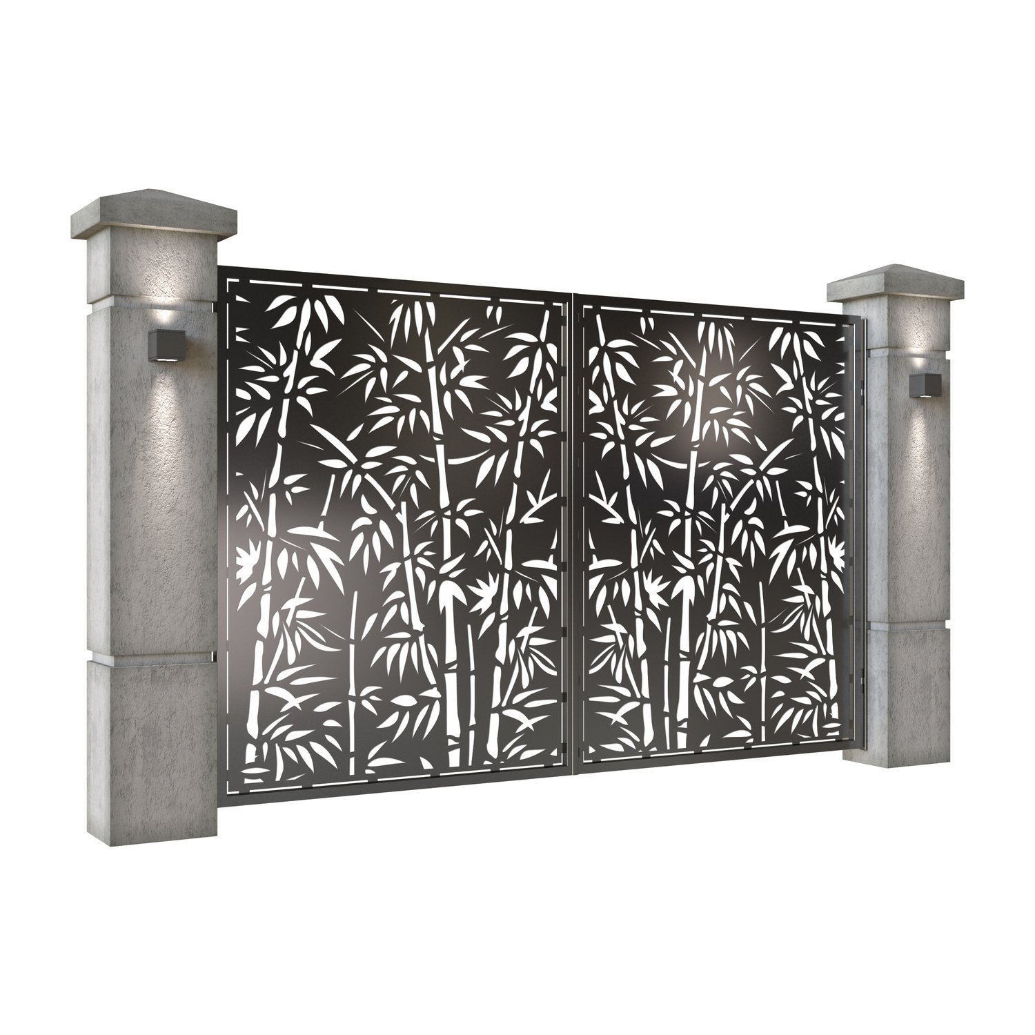 Panou de gard metalic din tabla debitata CNC, model Bamboo. Rama panoului este realizata din teava rectangulara tip lis (lisa), 40×30 mm, avand grosimea de 2 mm.