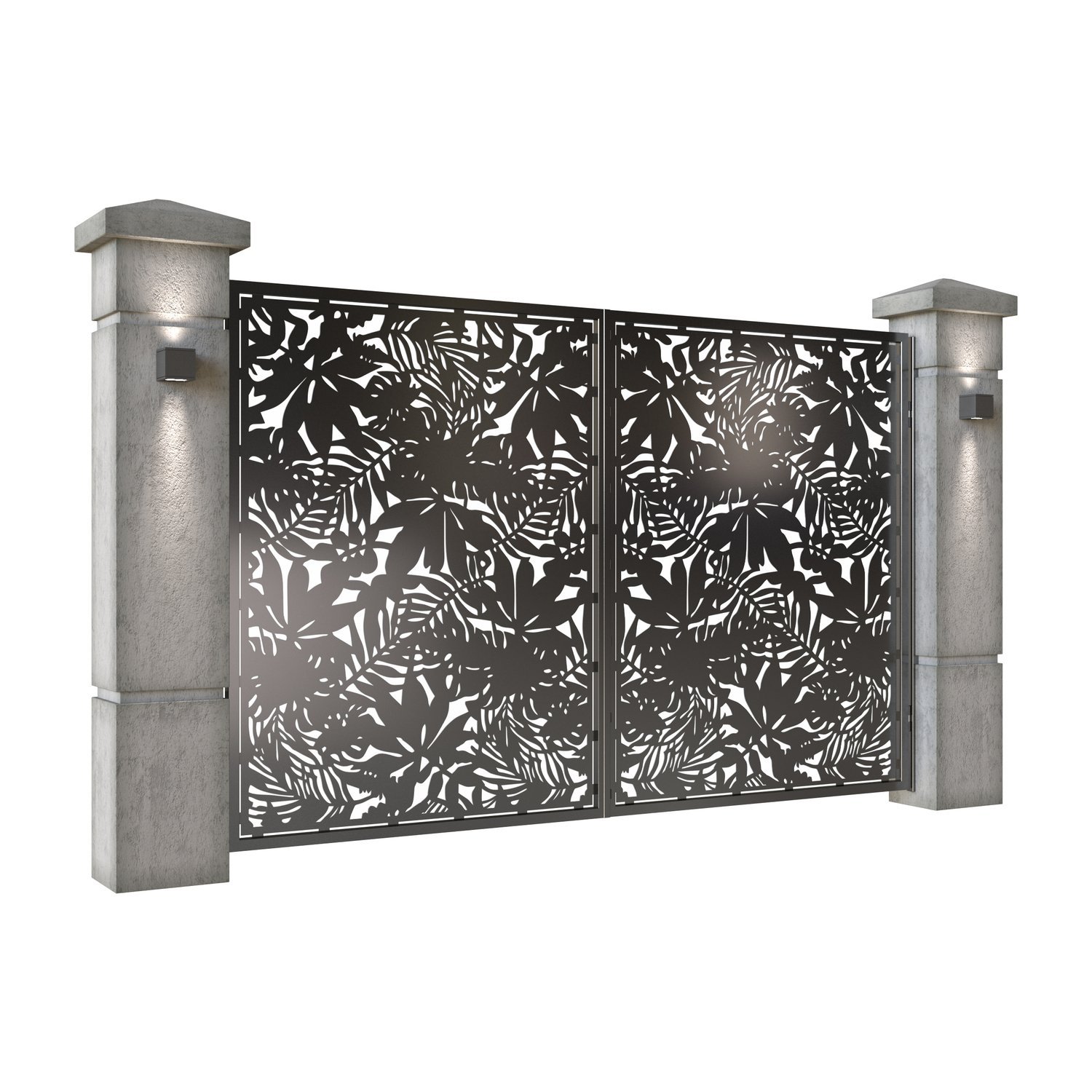 Panou de gard metalic din tabla debitata CNC, model Tropical. Rama panoului este realizata din teava rectangulara tip lis (lisa), 40×30 mm, avand grosimea de 2 mm.