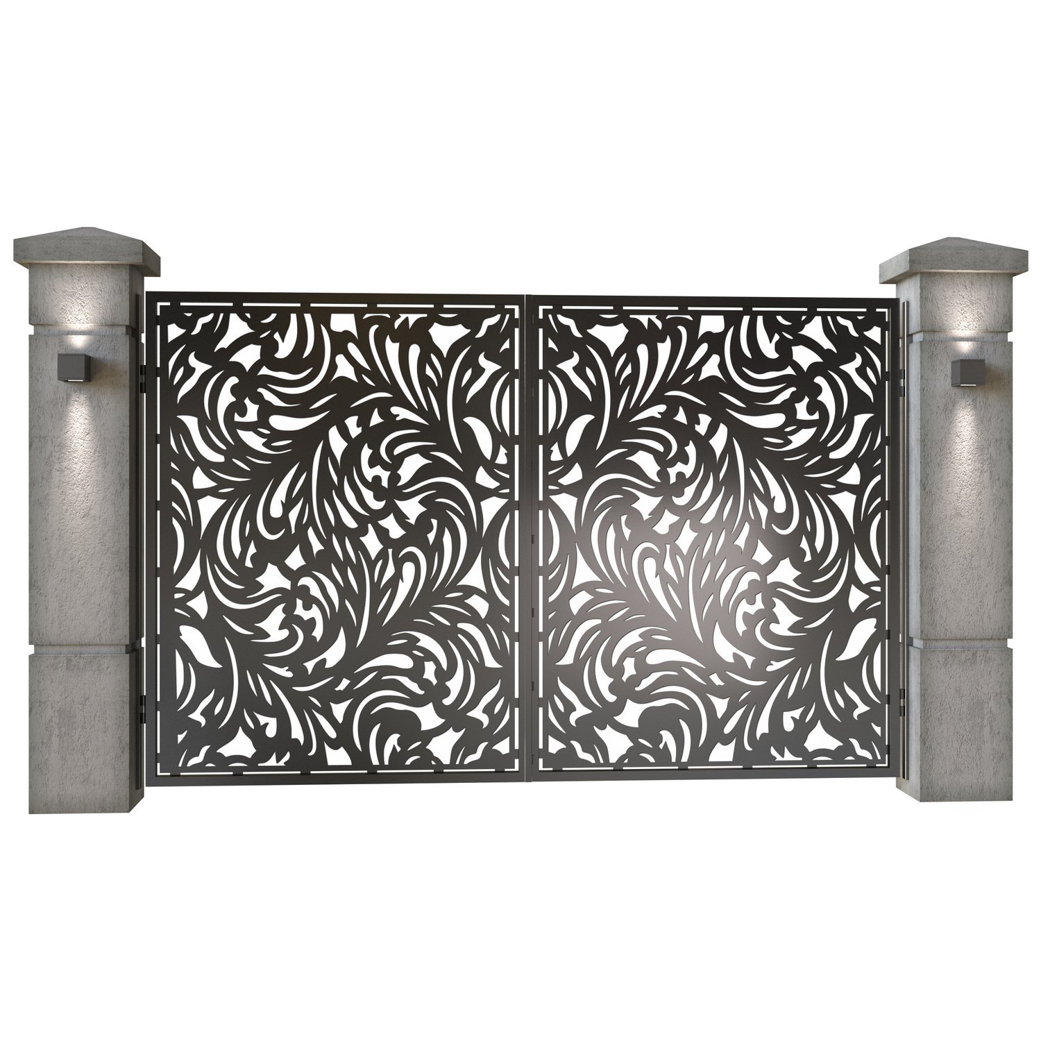 Panou de gard metalic din tabla debitata CNC, model Vortex. Rama panoului este realizata din teava rectangulara tip lis (lisa), 40×30 mm, avand grosimea de 2 mm.