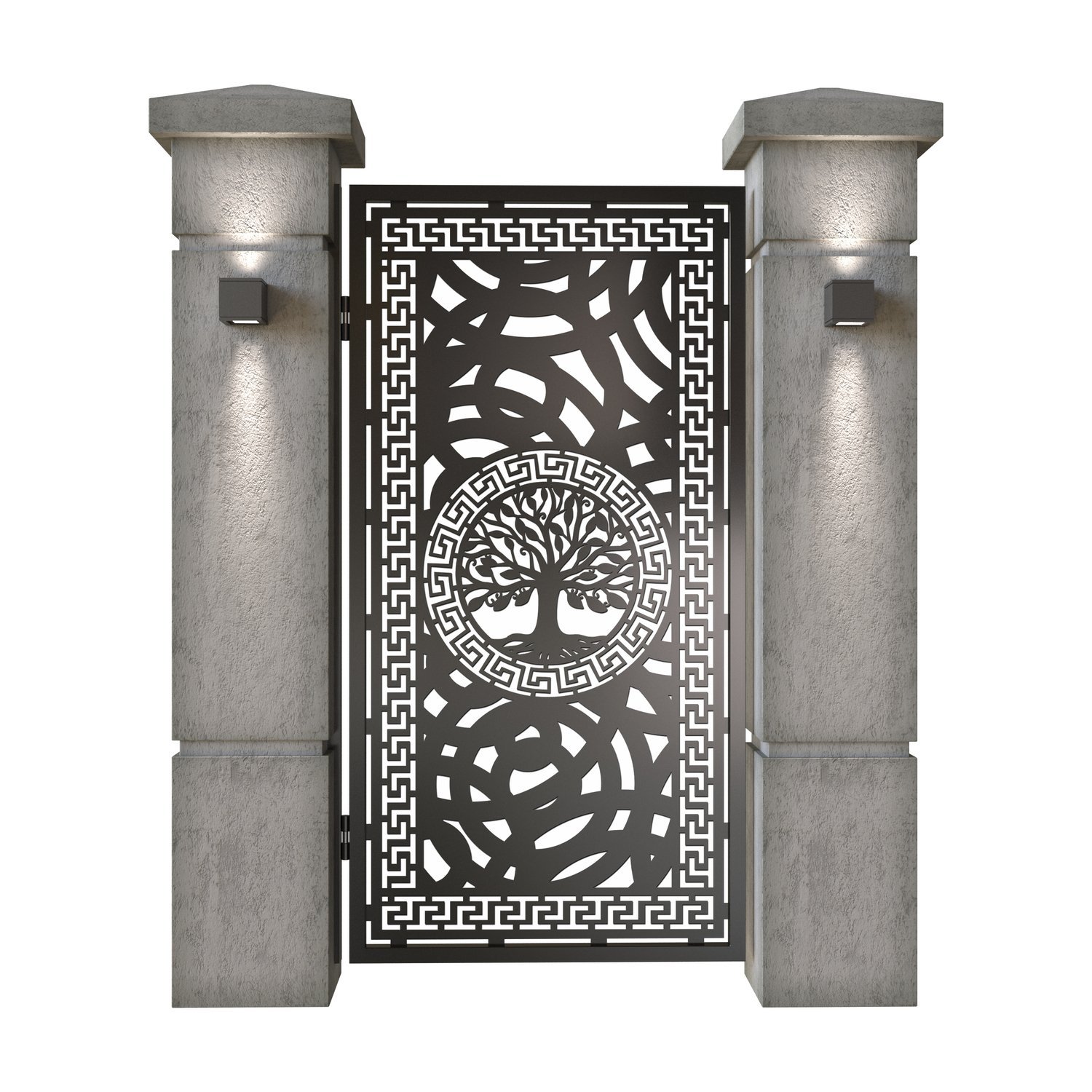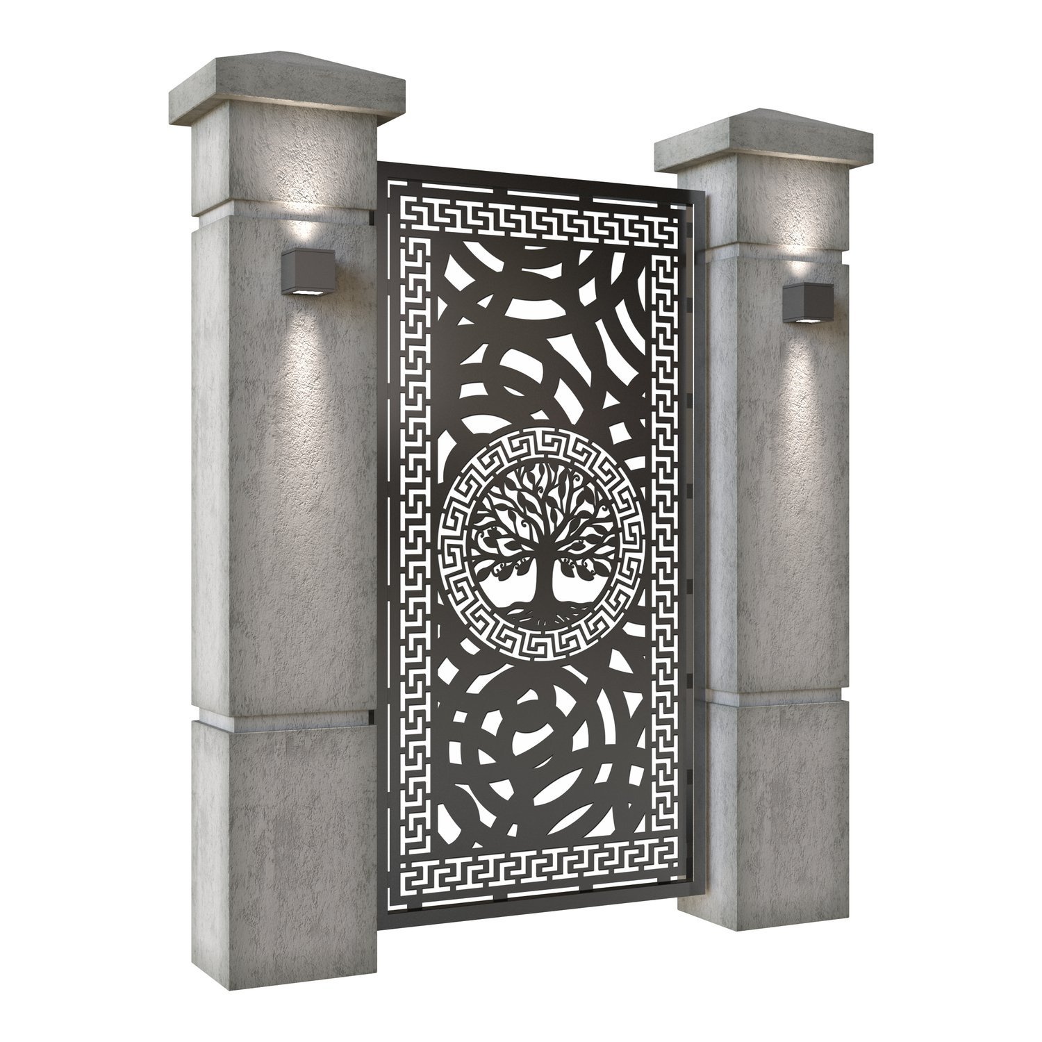 Panou de gard metalic din tabla debitata CNC, model Copacul Vietii. Rama panoului este realizata din teava rectangulara tip lis (lisa), 40×30 mm, avand grosimea de 2 mm.