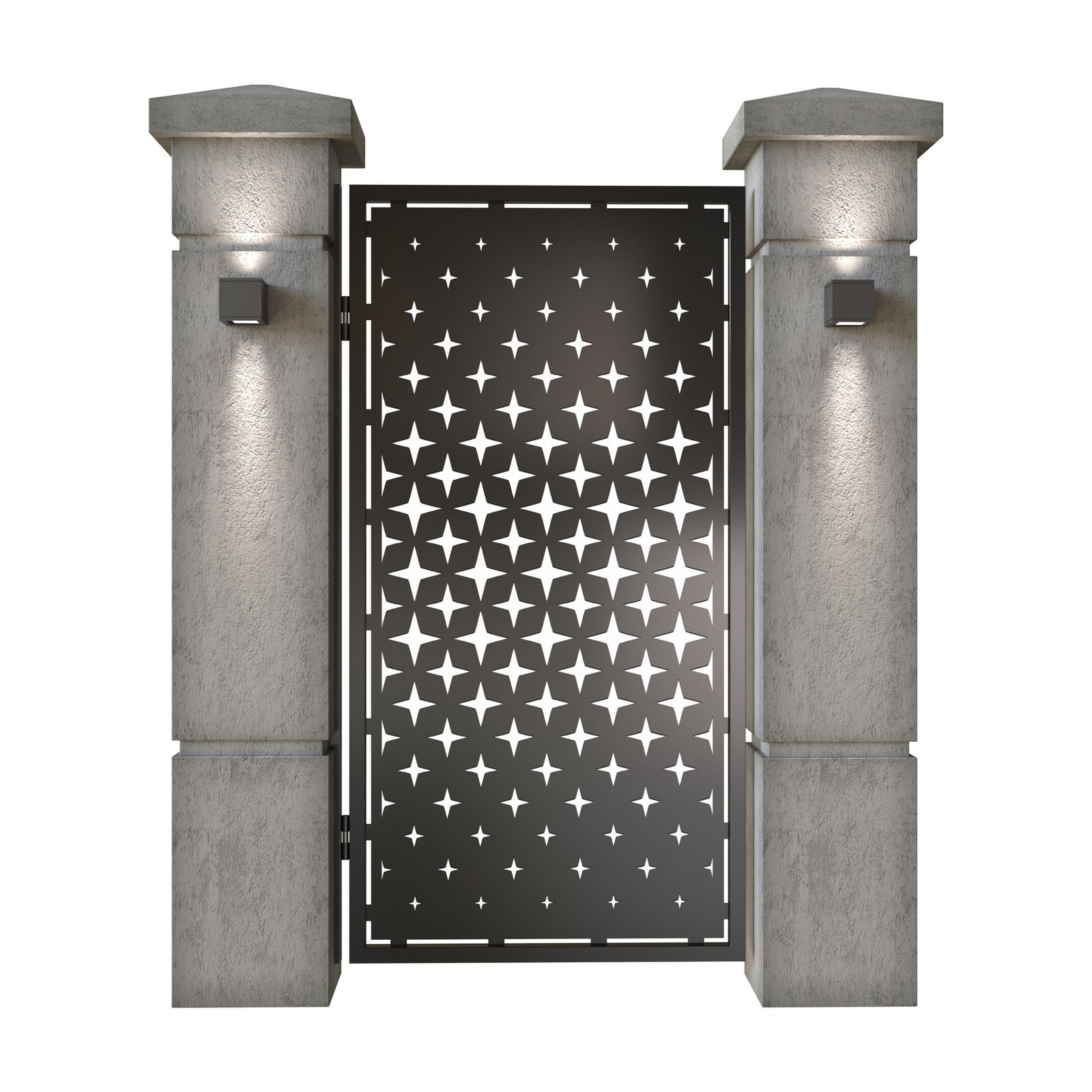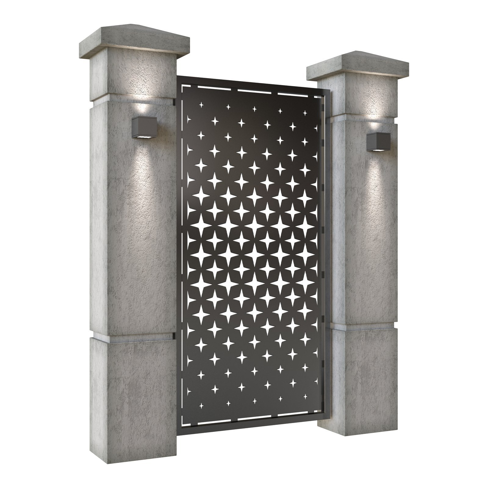 Panou de gard metalic din tabla debitata CNC, model Stars. Rama panoului este realizata din teava rectangulara tip lis (lisa), 40×30 mm, avand grosimea de 2 mm.