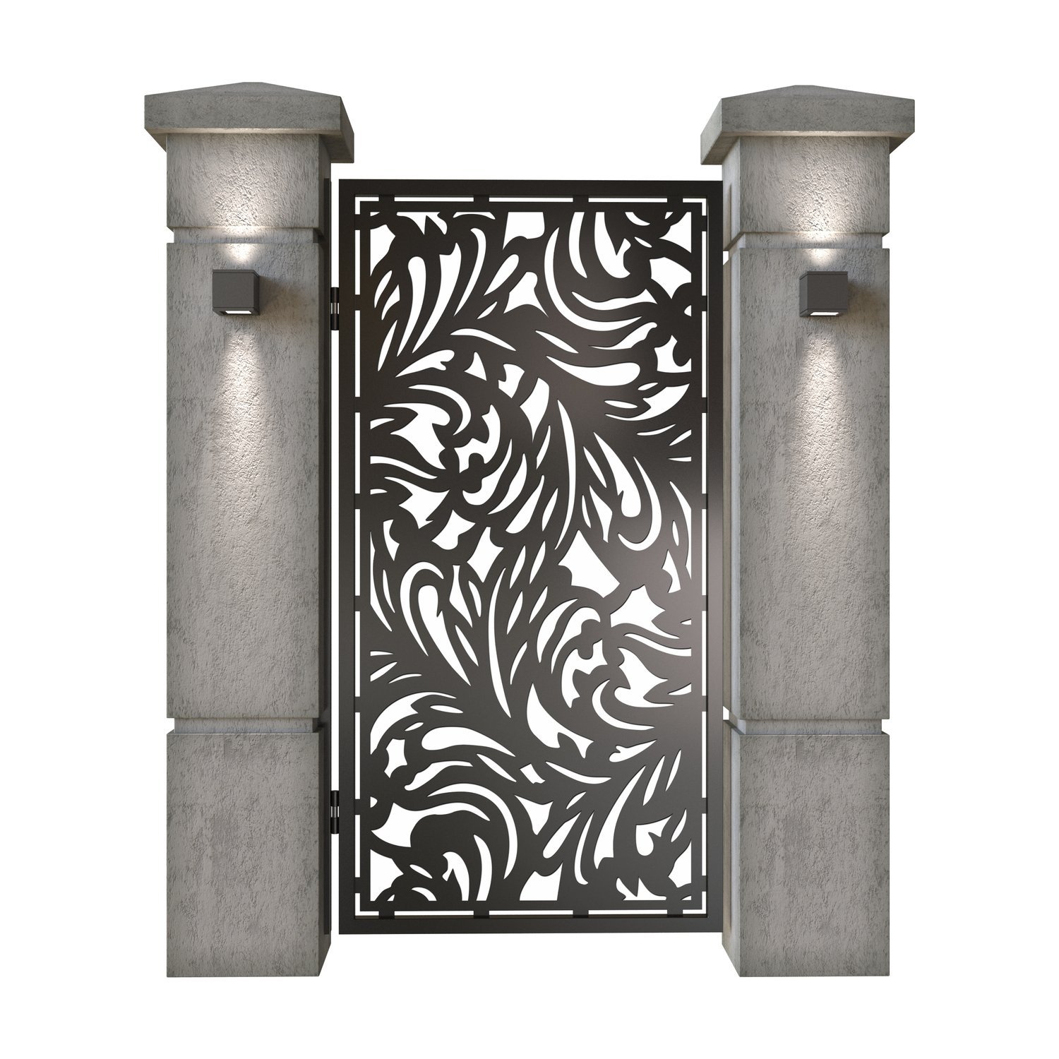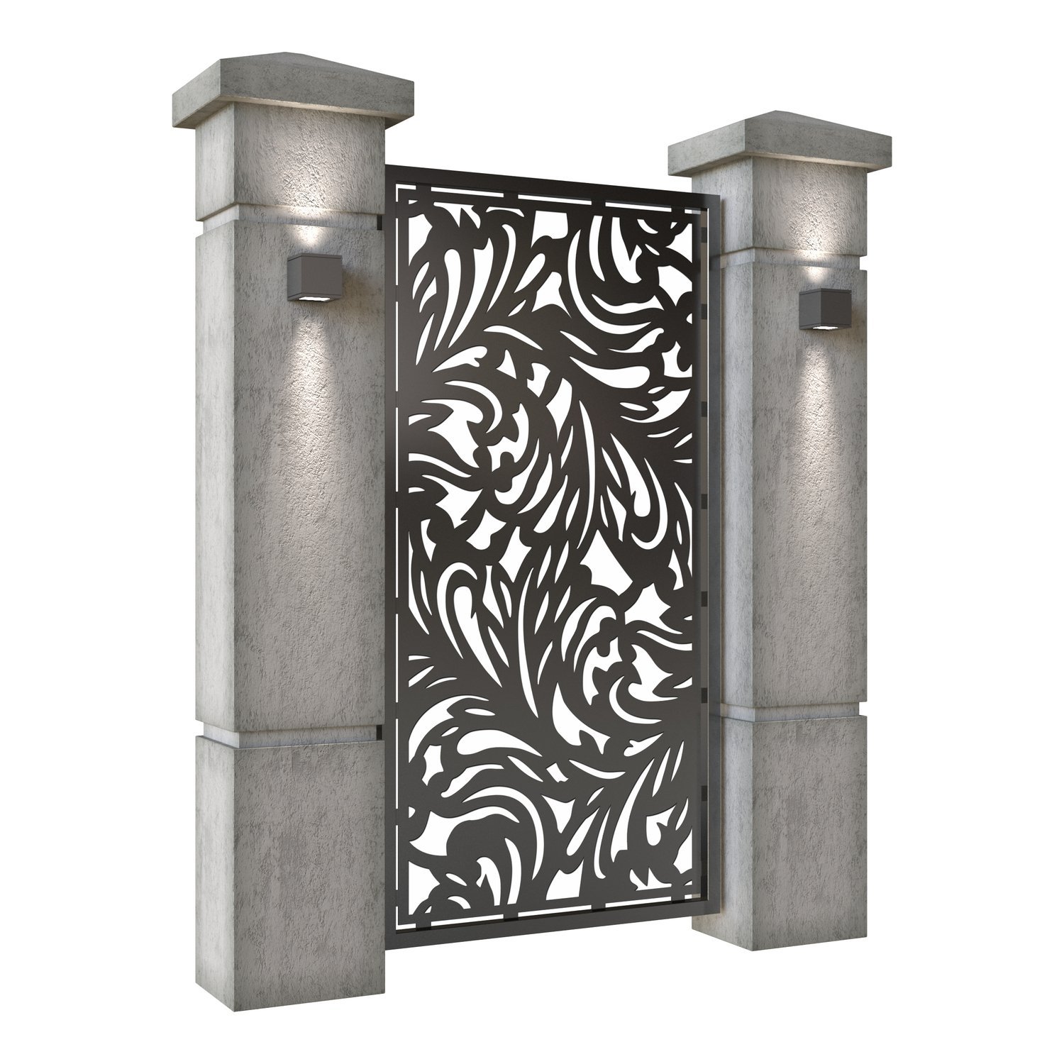 Panou de gard metalic din tabla debitata CNC, model Vortex. Rama panoului este realizata din teava rectangulara tip lis (lisa), 40×30 mm, avand grosimea de 2 mm.